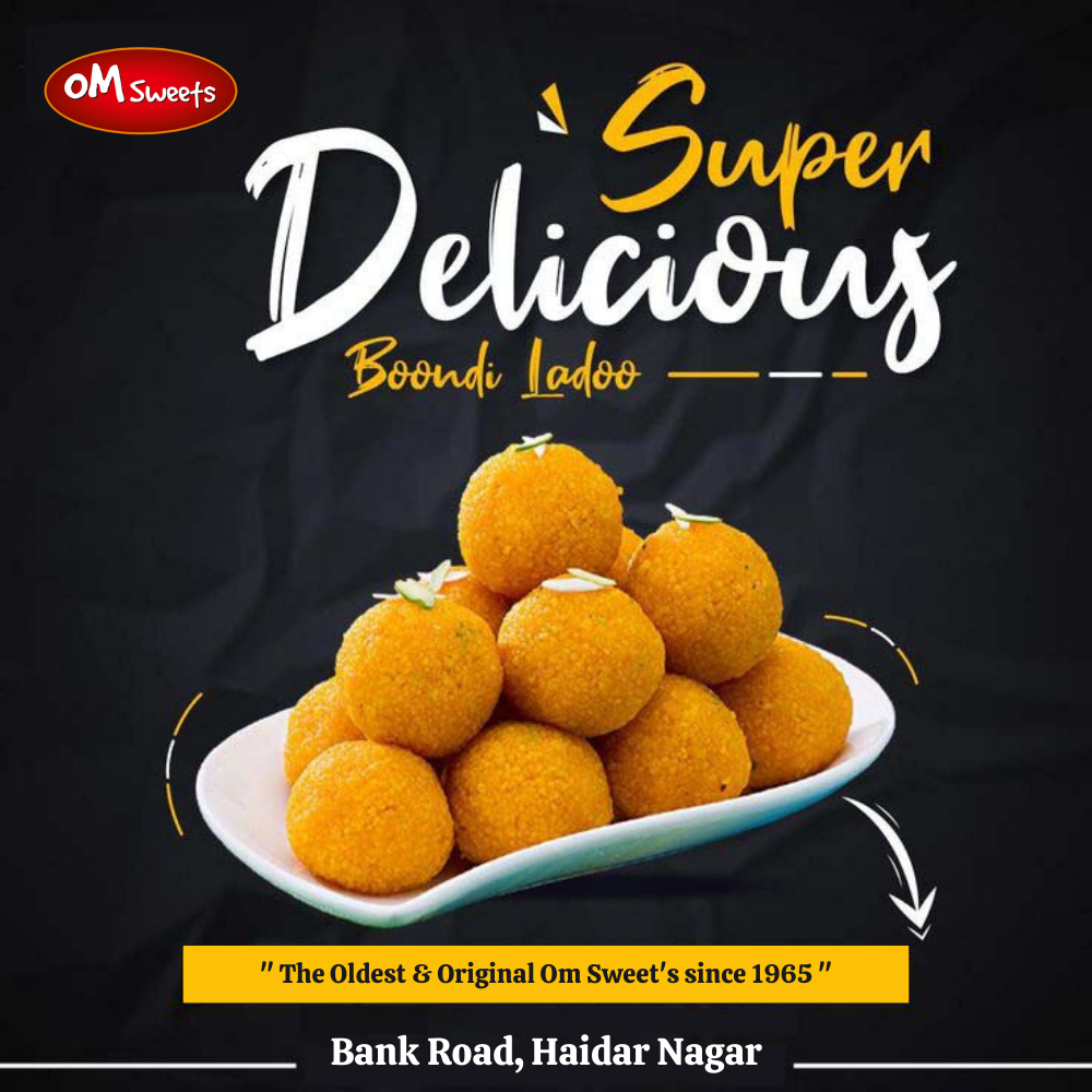 We make special arrangements for weddings, engagements, birthdays and pujas. At Om Sweets we believe in 100% customer satisfaction. We prepare shudh Desi ghee. We prepare our Namkeens with the best of ingredients and spices available in the market. We are also manufacturers of cookies and eggless bakery products that are popular for everyday use as well as for celebrations on special occasions.